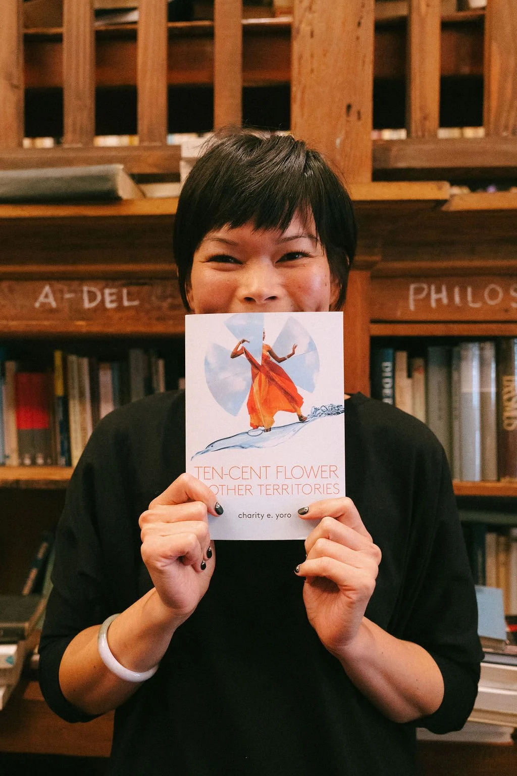 Charity E. Yoro’s debut poetry collection, ten-cent flower & other territories (First Matter Press 2023), explores what is lost in lineage, translation, transaction, and seeks reclamation through mapping. Through etymologies of place names and monuments and godheads to navigating complex geographies of mother/daughter, lover/other, colonizer/colonized; from ledger of transgressions to passage through birth canal, with quiet defiances against autocorrect, capitalization. It is a collection of constellation, origin story, futures.